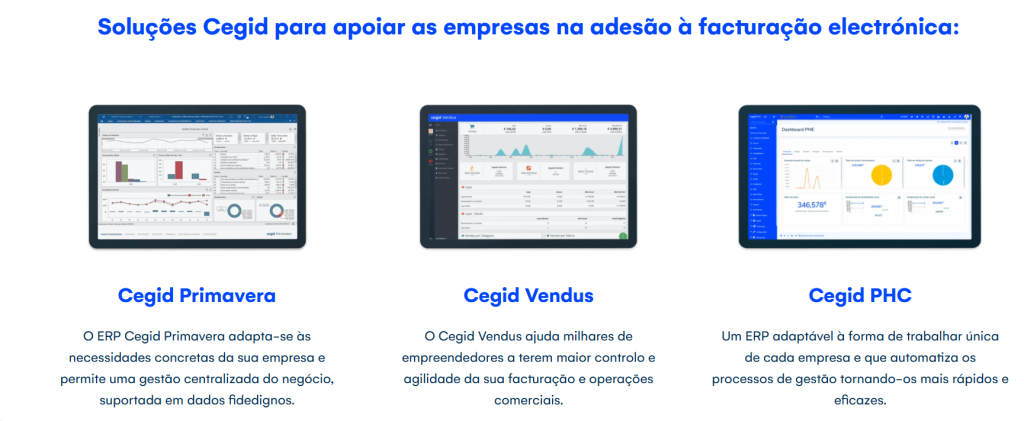A solução ideal para cada necessidade: Num mundo em constante mudança, as soluções Cegid estão em atualização contínua para responder de forma eficaz e atempada às crescentes exigências legais.